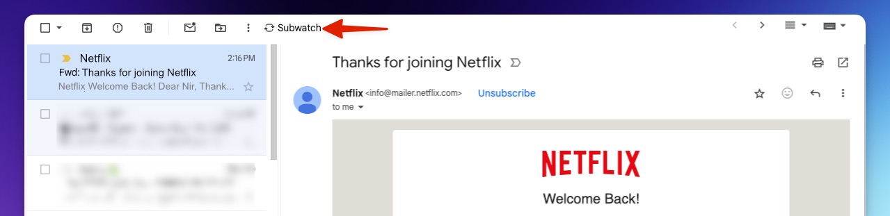 When you view an email inside of Gmail click the 'Subwatch' button.